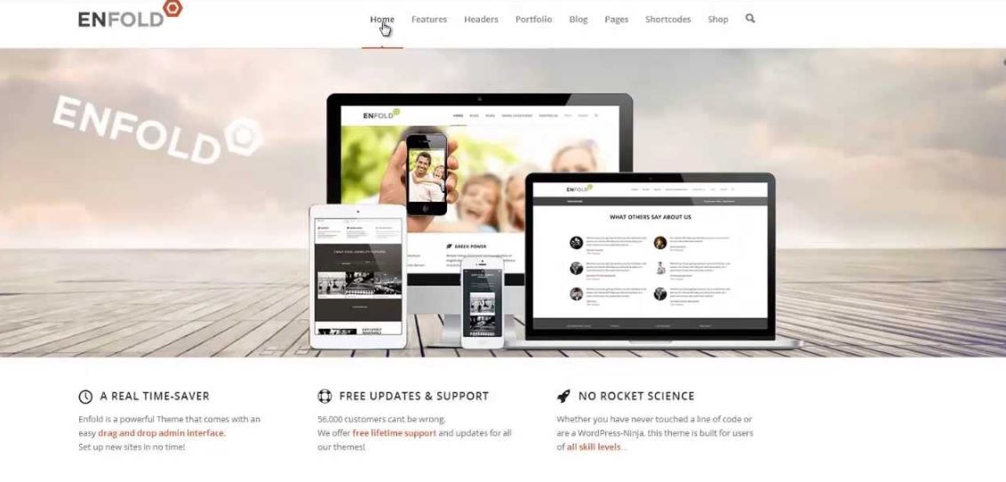 - Enfold: Desain elegan, fitur form kontak, portofolio, hingga slider testimoni bawaan.